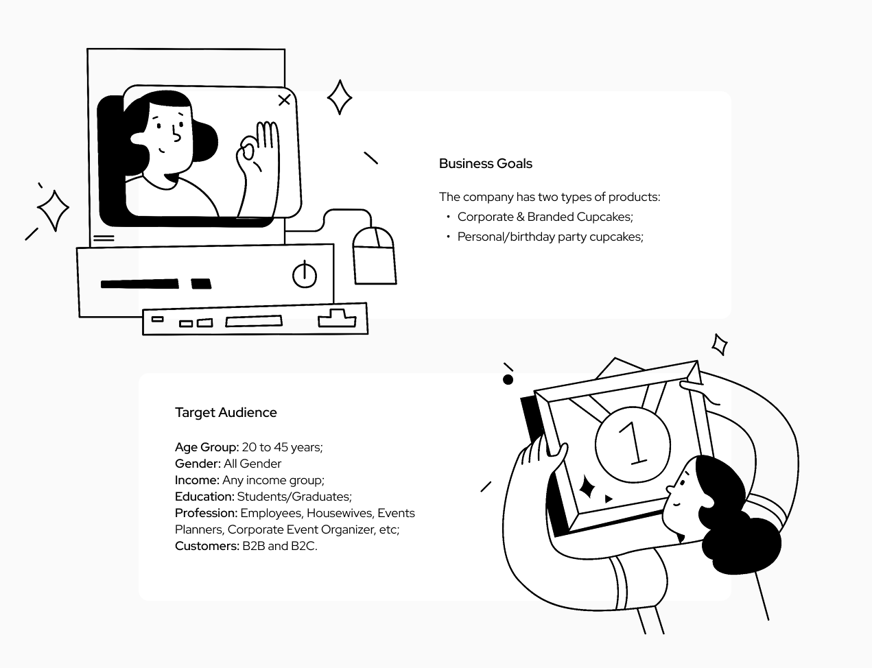 Users want a fast, intuitive way to find and order cupcakes without confusion, while still enjoying the brand’s fun personality.