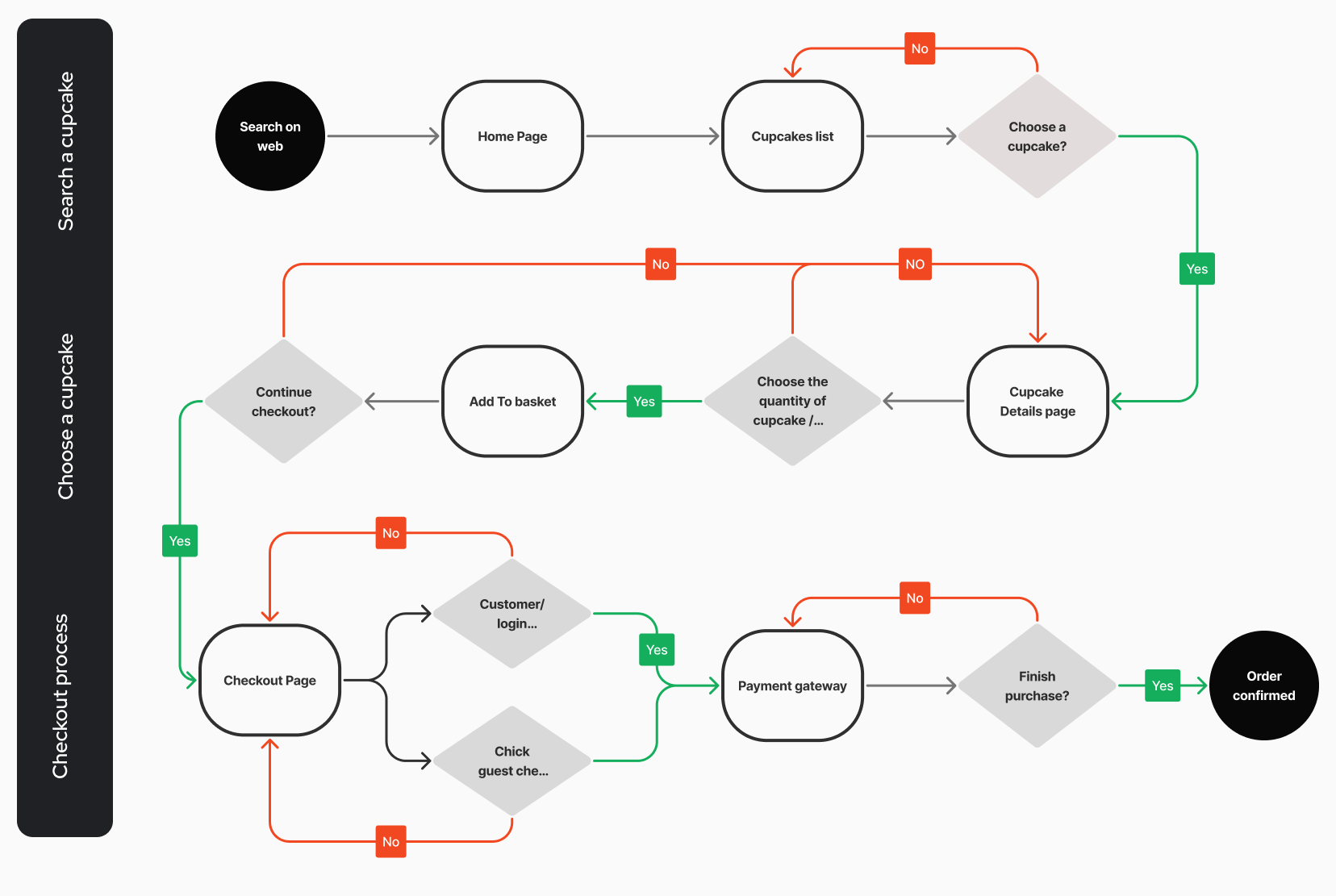 Lack of clear user flow for ordering cupcakes online